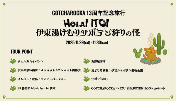 GOTCHAROCKA13周年記念旅行開催!! NEW!! 8/25(月)12:00より、申込受付開始!