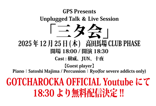 GOTCHAROCKA OFFICIAL Youtubeにて18:30より急遽無料配信決定!!